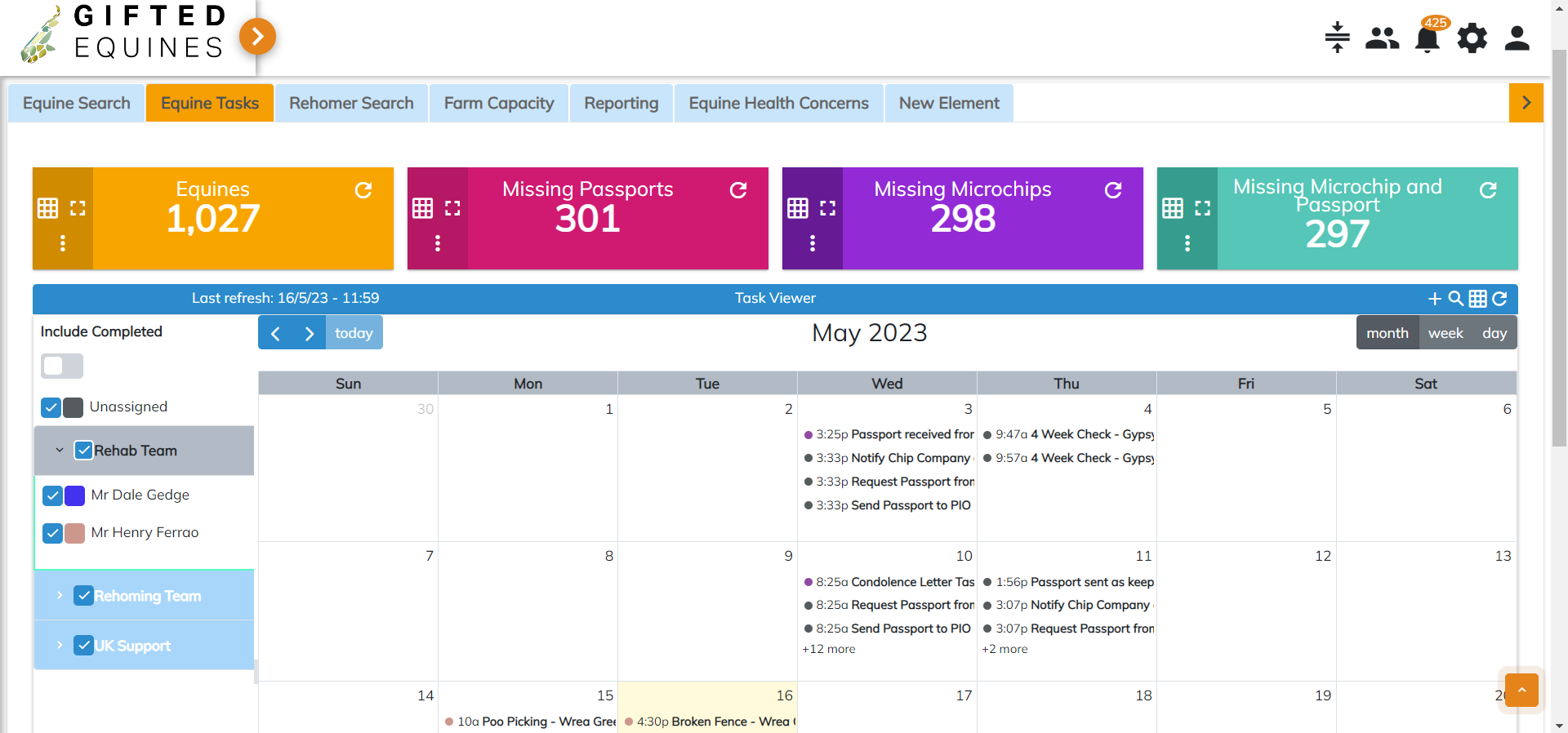 Rehabilitation is at the core of equine care, so we ensured a complete overview of each horse is only ever a click away. The Equine 360 provides a full picture of each individual, including a digital health record, digital ID info, rehabilitation progress, images, and any upcoming vaccinations, farrier treatments, worming schedules, or training actions.